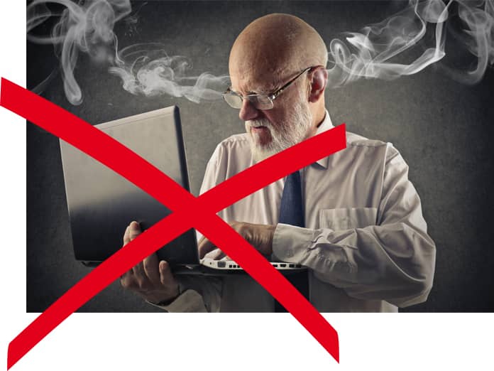 Bildnachweise (von oben nach unten): Senior ärgert sich vor Laptop © olly – AdobeStock ® | Butler © Drobot Dean – AdobeStock ®
