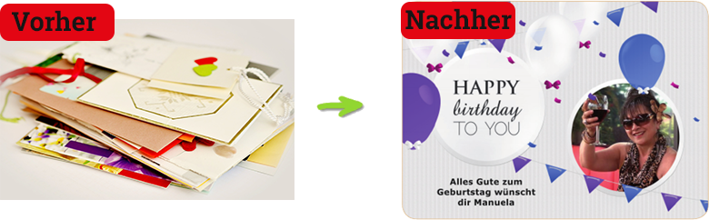 Weil Sie zum Beispiel Bilder vom letzten Geburtstag nehmen, die die damals so schöne Stimmung gleich wieder lebendig werden lassen. Und so von alleine dafür sorgen, dass auch das anstehende Fest genauso lange im Gedächtnis der Gäste bleibt.
