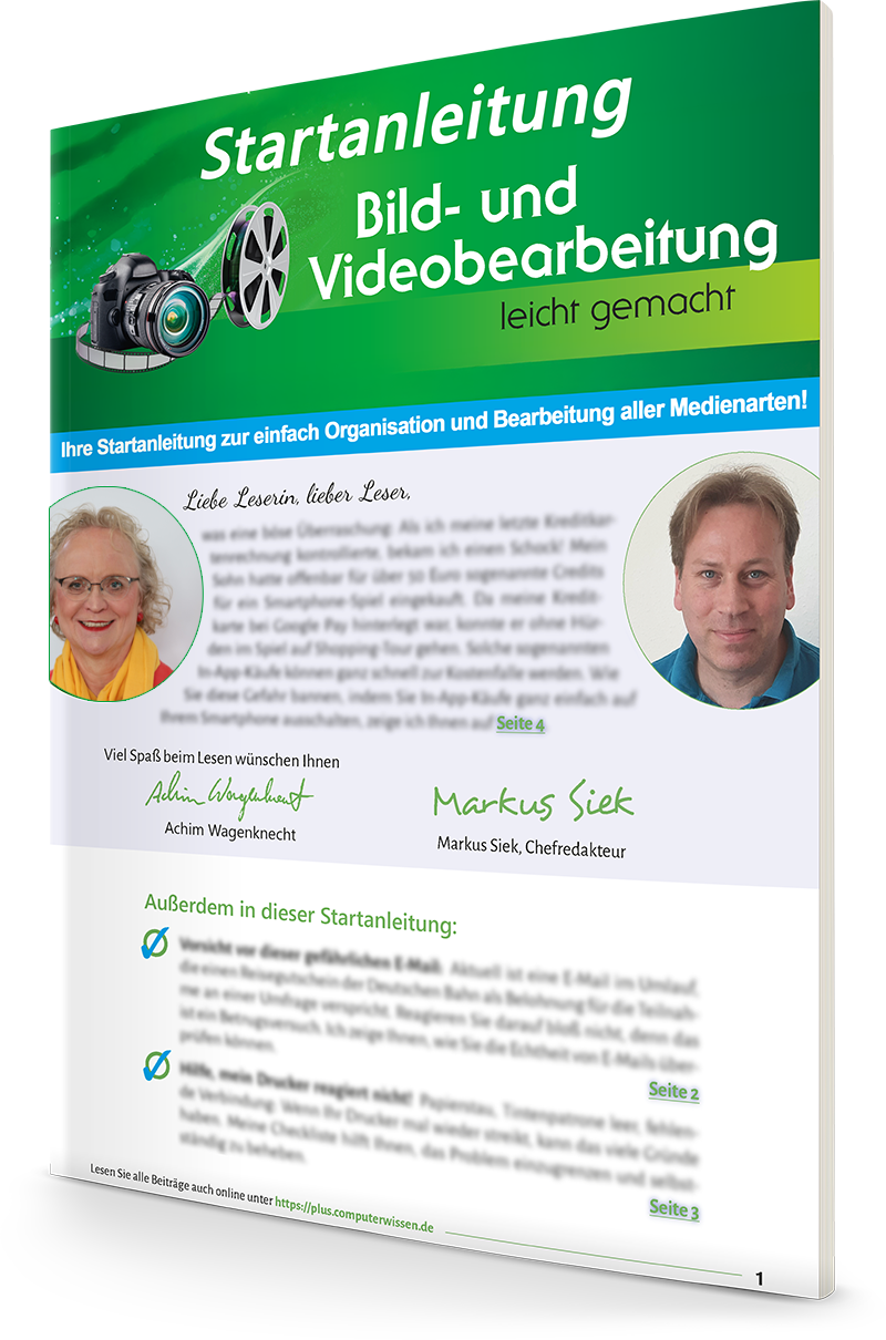 Sie erhalten im Rahmen Ihres 30-Tage-Test-Pakets die aktuelle Ausgabe Bild- und Videobearbeitung leicht gemacht